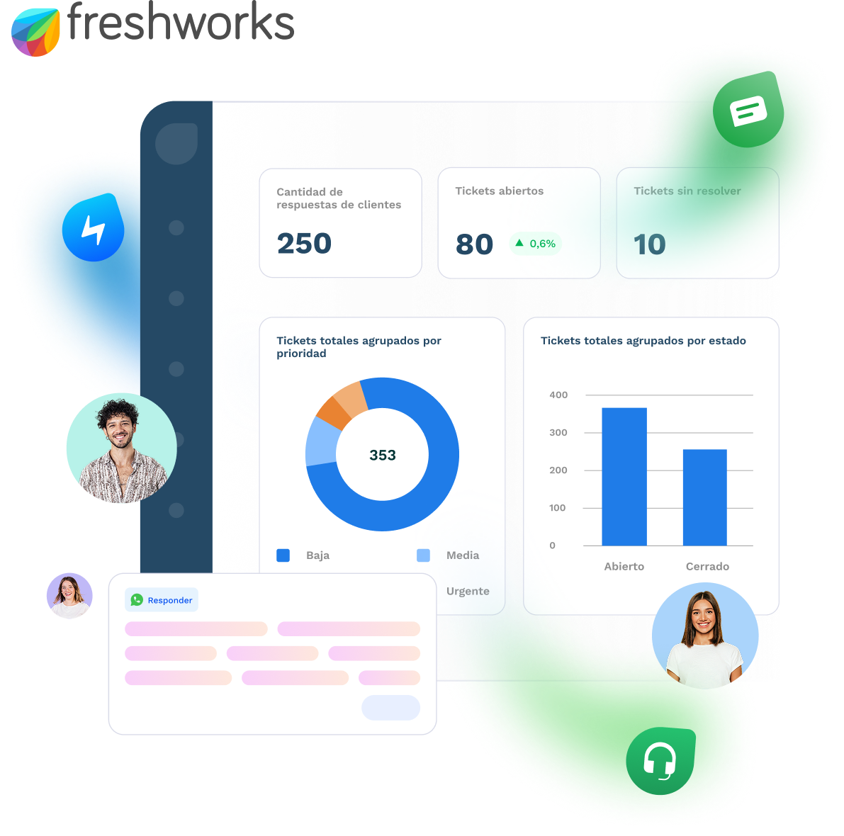 Tu servicio al cliente, más rápido, eficiente y sin fricciones. Con Freshworks, lograrás: